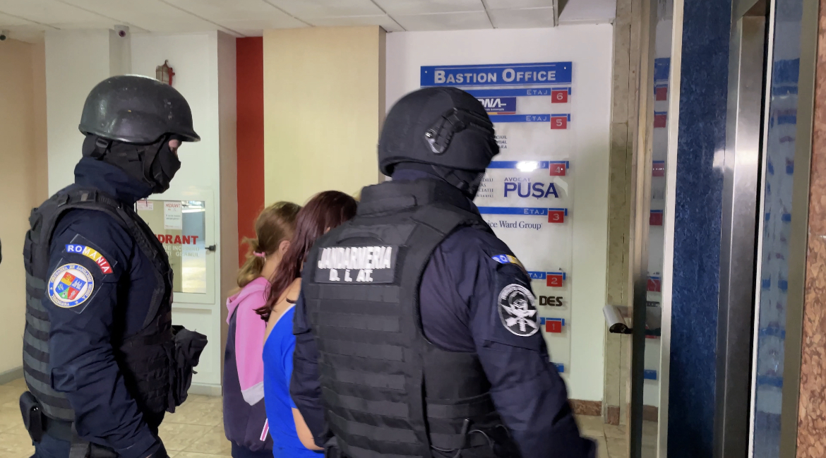 La sediul DIICOT din Timișoara au fost aduse cele două minore, în calitate de martori, iar mama lor și fostul său concubin sunt suspecți alături de bărbații care primeau fotografiile.