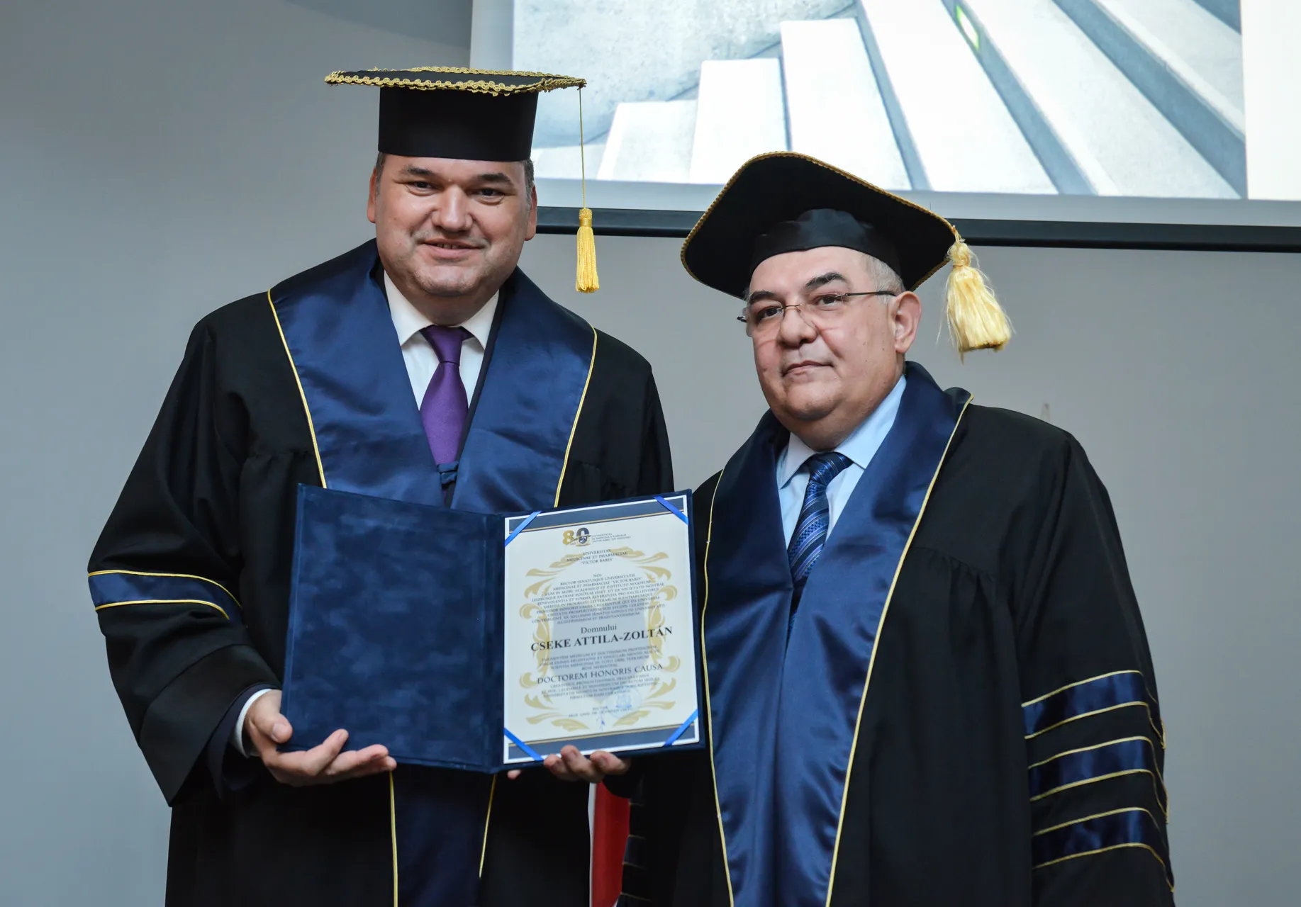 Universitatea de Medicină și Farmacie „Victor Babeș” din Timișoara a acordat titlul de Doctor Honoris Causa ministrului Cseke Attila Zoltán, în semn de recunoaștere a implicării sale în îmbunătățirea sănătății publice și a colaborării interinstituționale. Distincția a fost conferită luni, 16 iunie 2025, la ora 12:00, în Aula Magna a universității.