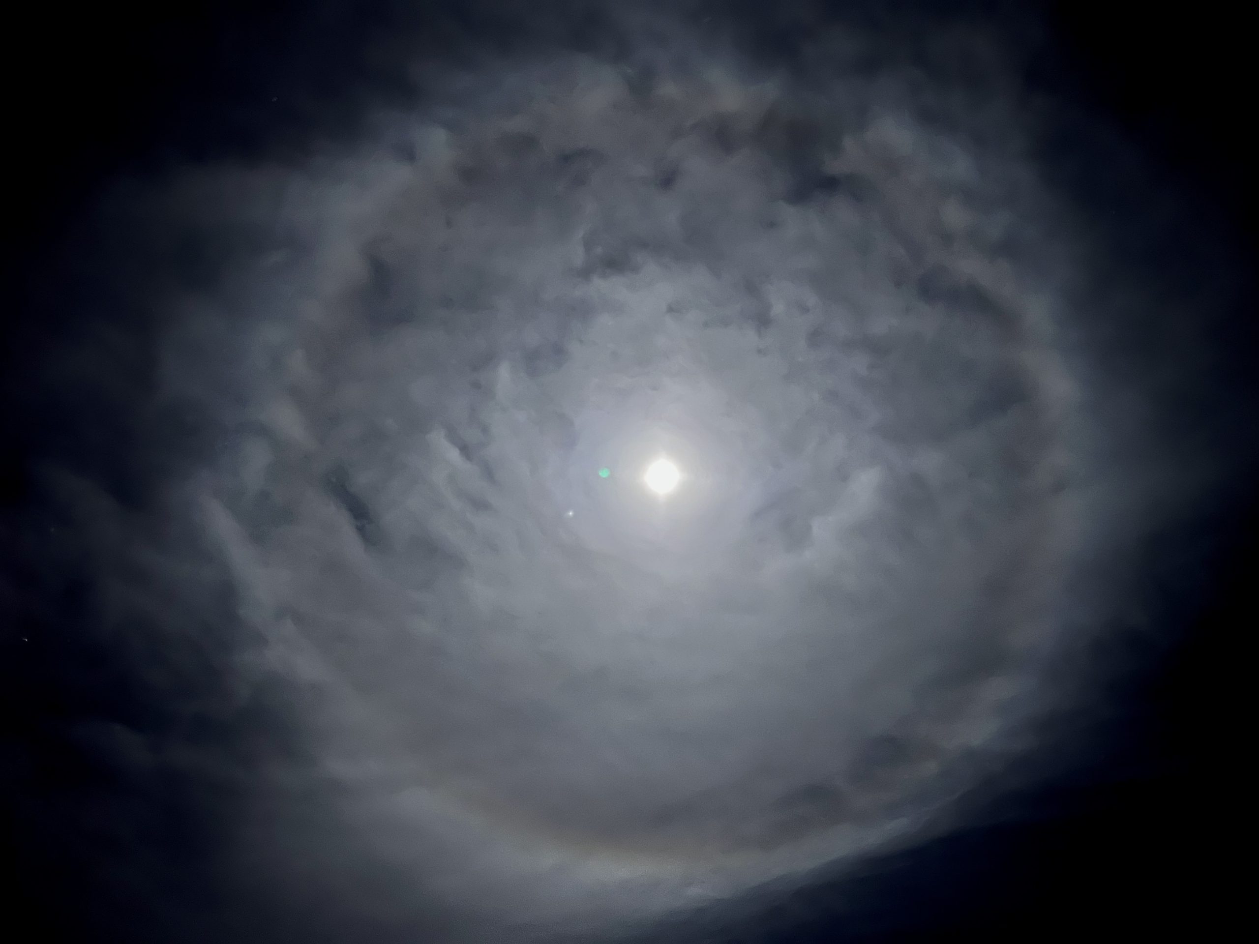 De asemenea, la miezul nopții, în jurul Lunii, locuitorii din vestul țării au putut observa un fenomen numit halou sau aură/ inel luminos.